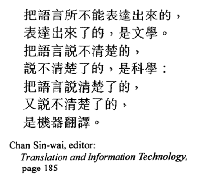 And machine translation is that which makes unclear what language has made clear. (Note 8)