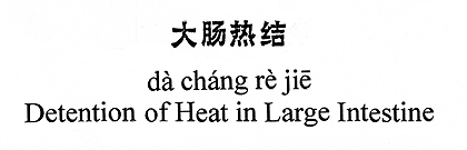 The pathologic changes due to accumulation and retention of pathogenic heat in the large intestine. The main symptoms are constipation, abdominal distension with pain and marked tenderness, yellowish [sic] and coating of the tongue, strong deep pulse, etc. (Note 12)