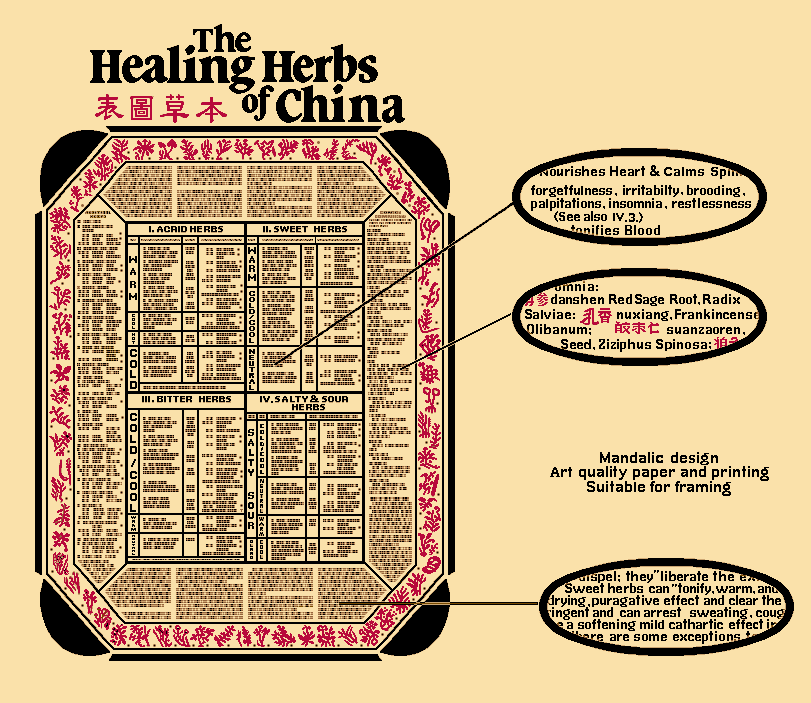 The history, principles, and practices of Chinese herbology with guide to use of the chart.
