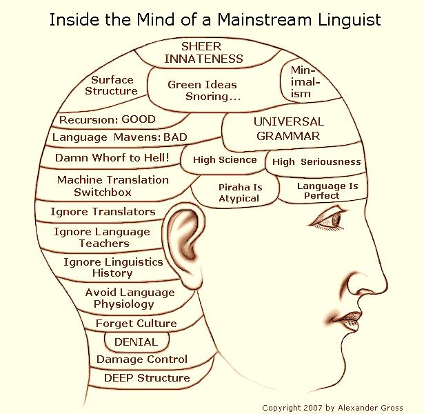 As can be readily seen, this image provides a remarkably precise view of how the minds of so many of today's mainstream linguists function. And as this overview also makes quite clear, these linguists do not dwell on some sublime and elevated plane beyond all criticismrather the shortcomings of their actions and attitudes are altogether predictable.